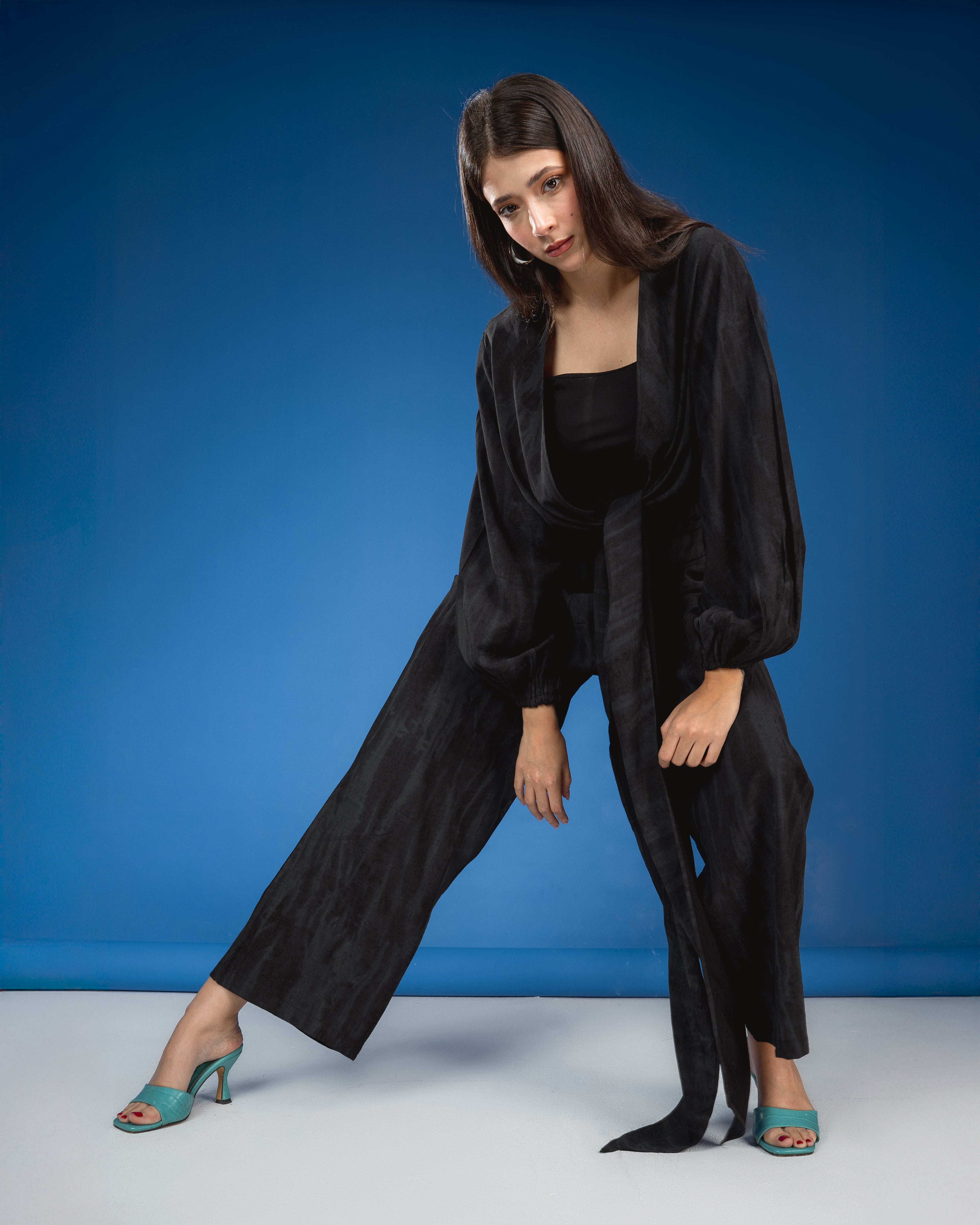 BLACK/GREY DOUBLE SIDED PLISSE ABAYA